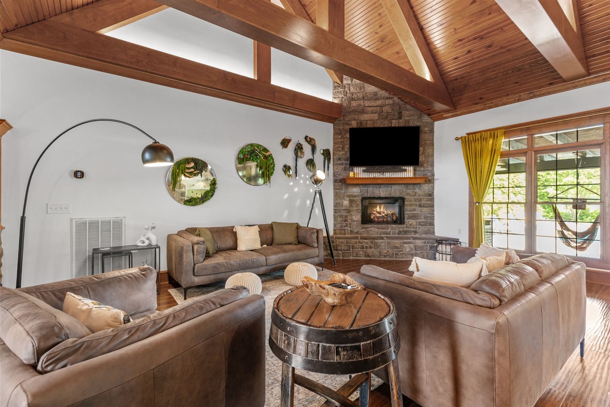 4 Bedrooms • 5 Bathrooms (4 full, 1 half) 5 Baths (4 full, 1 half) • Sleeps 12Make yourself at home in this 4-bedroom private retreat on 5 acres centrally located to Nashville. Nestled in a peaceful setting, this gorgeous property boasts an abundance of amenities to catering to family gatherings, to couples’ vacations, corporate retreats as well as those guy and gal only group getaways. Downtown is a short drive away, Opryland within 15 minutes and outdoor activities like golf, boating and hiking are all in the immediate surrounding area.