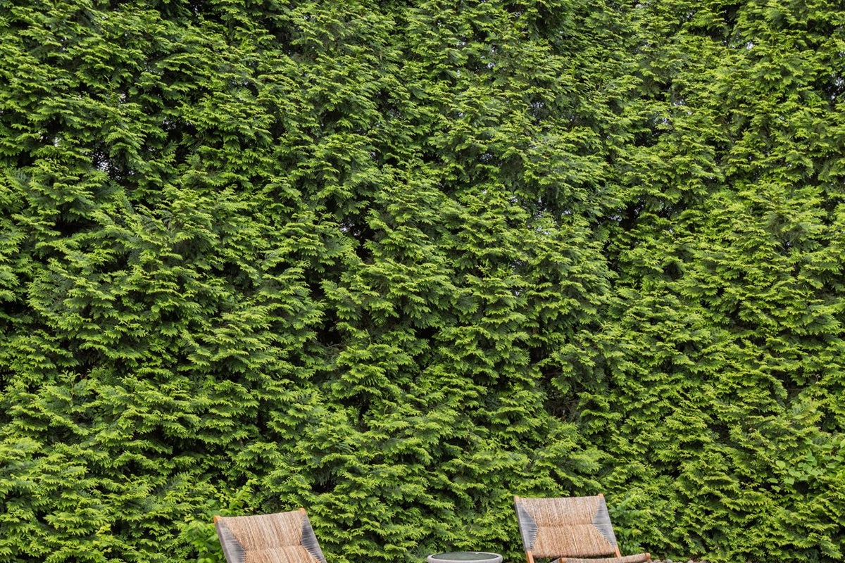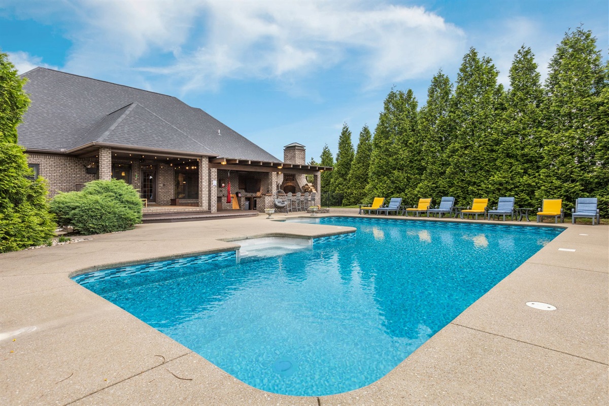 Guests will have plenty of space to relax and unwind around the heated saltwater pool surrounded by 40ft Green Giant Trees; perfect for private spa days, family time playing pool volleyball or enjoying some sports on the TV in the outdoor kitchen while grilling.