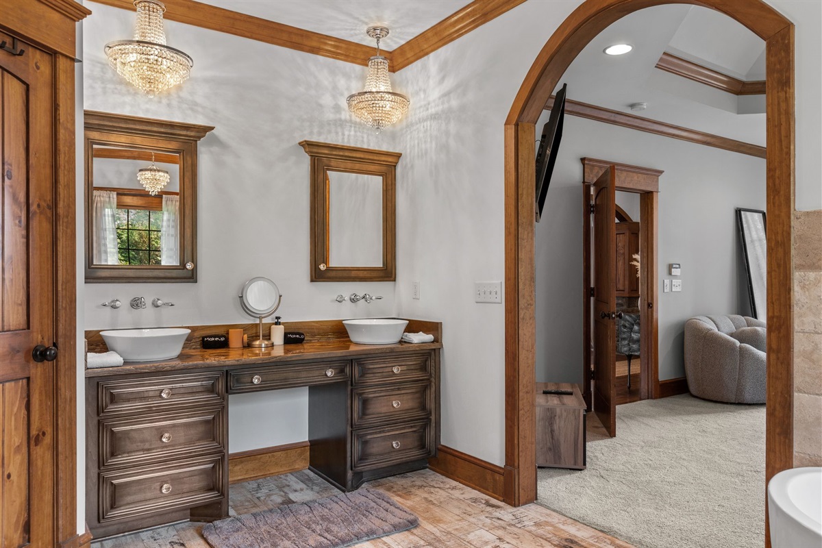 The property boasts a master bedroom with a king bed, beautiful open shower and spa tub, plus a bonus room which can be used as an office and sleeping area. Also, downstairs guests will enjoy two private rooms with queen beds. Upstairs open the door to a beautiful in-law suite, complete with a kitchenette, second living room, and a full bathroom with a spa tub. The outdoor pool area is also equipped with a bathroom and shower in the pool house.